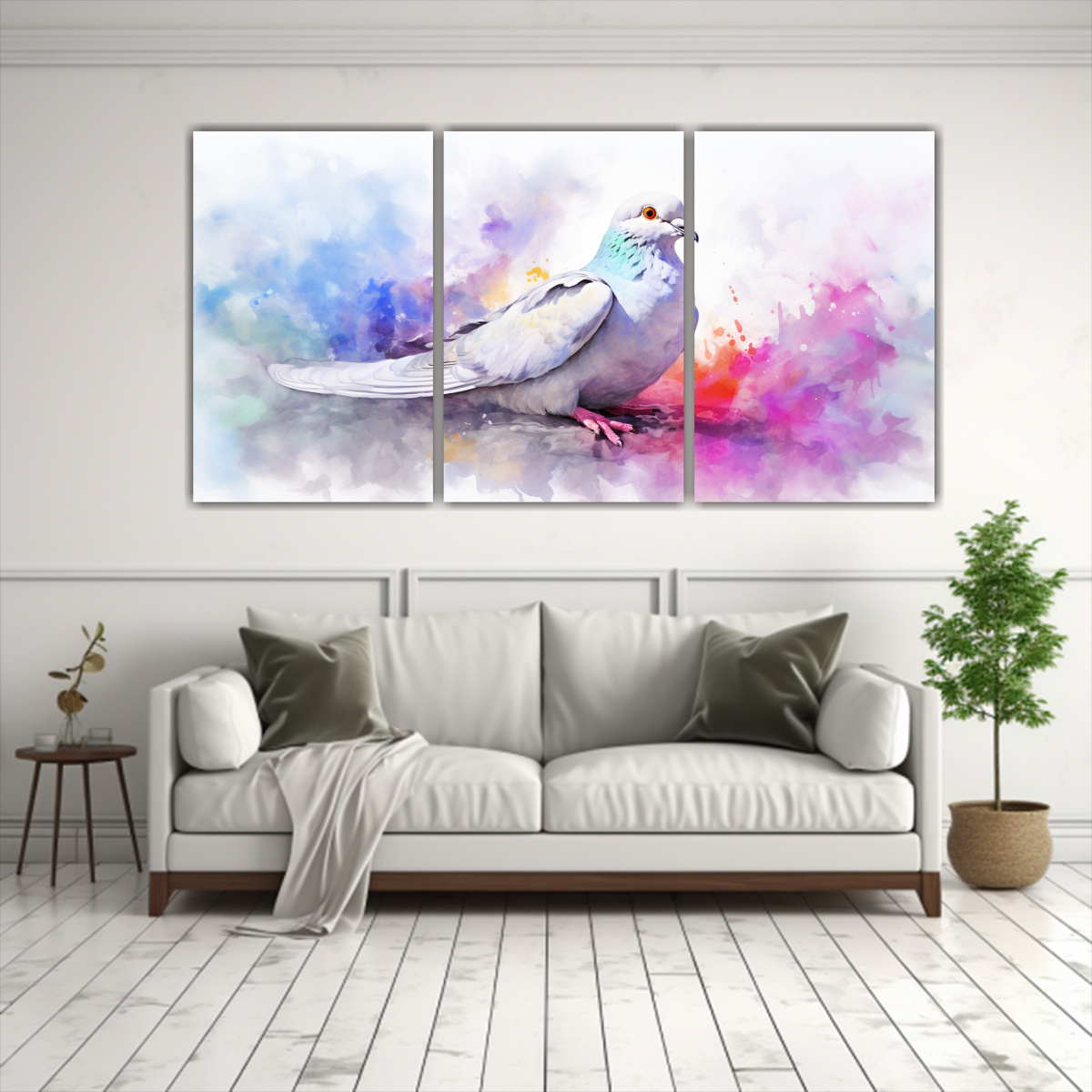Este Tríptico Encantador de Palomas se vería espectacular en la sala de estar sobre un sofá de color neutro, destacando su paleta de colores También puedes colocarlo en un pasillo largo para crear una galería de arte en casa