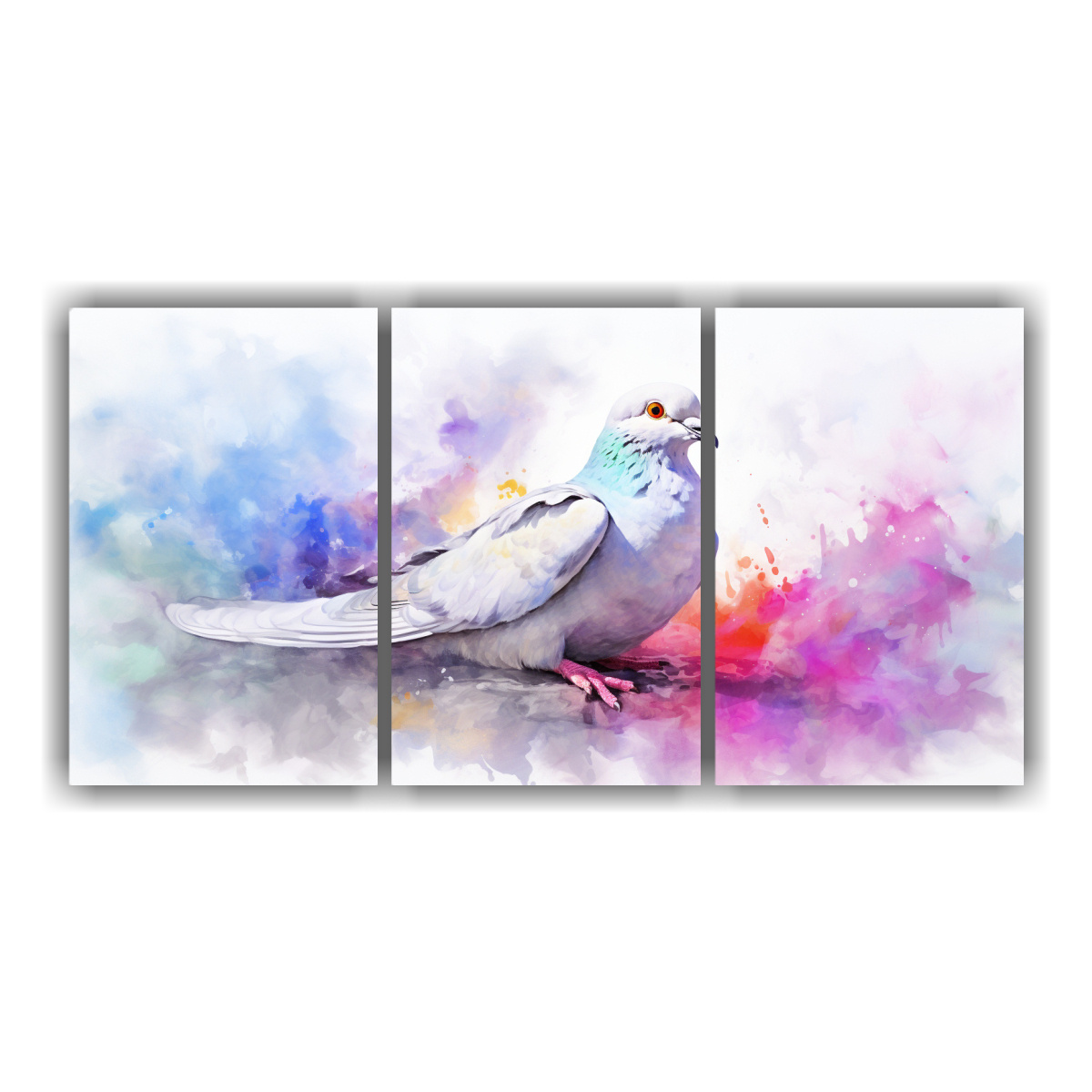 Tríptico Encantador De Palomas Acuarela Colorida 21 V
