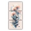 Tríptico Floral Diente De León Rosa Y Azul Pintura Abstracta Deco