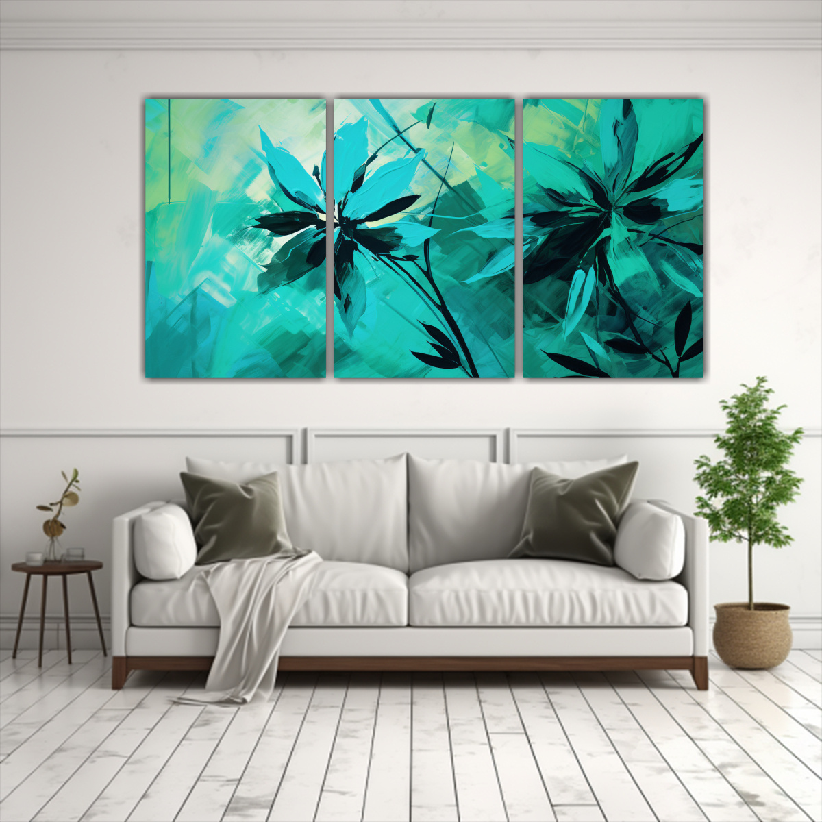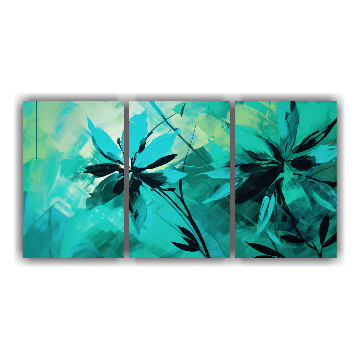 Tríptico Fotografía Escenario Verde Y Turquesa, Atmosfera Neonoir En Decoración Pinturas