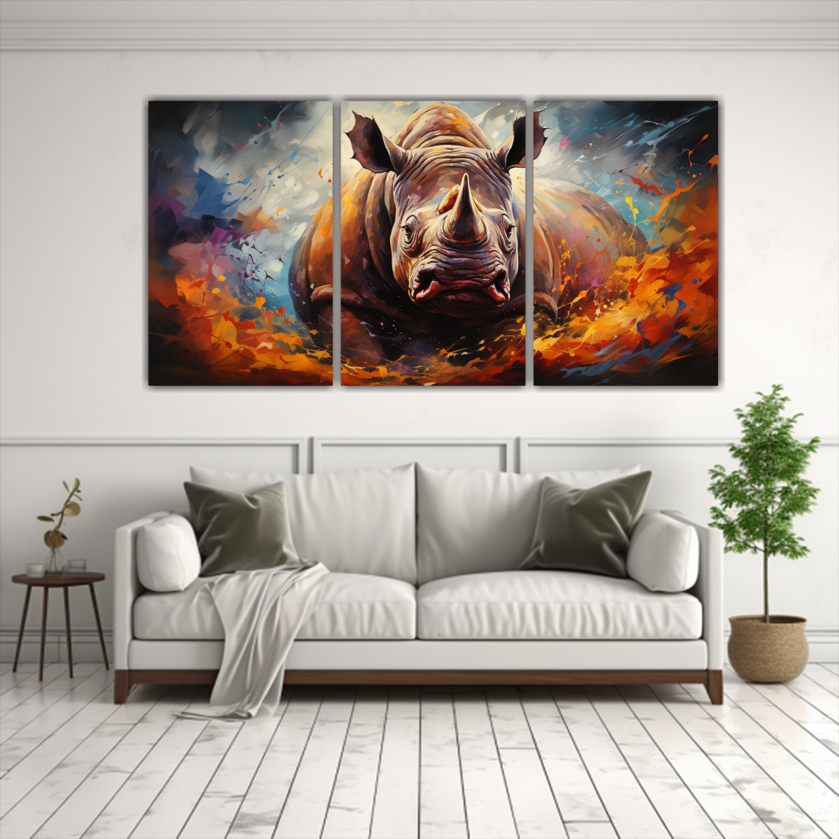 Tríptico Hogar Deco Rhinocerontes Acuarela Colorida