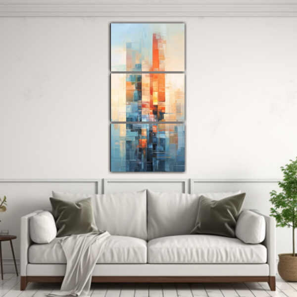 Este tríptico impresionista de edificio moderno en tonos dorados, beiges y grises sería perfecto para decorar un salón o recibidor con un estilo moderno y sofisticado Puedes colocarlo sobre un mueble consola en tonos neutros y complementarlo con algunos accesorios decorativos en coral, carmesí o turquesa para crear un contraste llamativo También puedes combinarlo con muebles en tonos plateados o lila para lograr una ambientación más elegante ¡Deja volar tu imaginación y crea un espacio único con este cuadro!