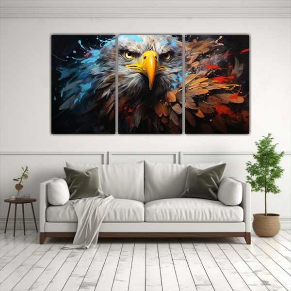 Este Tríptico Inspirador Acuarelas Coloridas Estilo Pintura Aguila queda perfecto en la sala de estar sobre un sofá o en la pared principal del comedor, creando un punto focal que atrapará miradas y generará conversaciones Combínalo con muebles en tonos neutros para resaltar su belleza