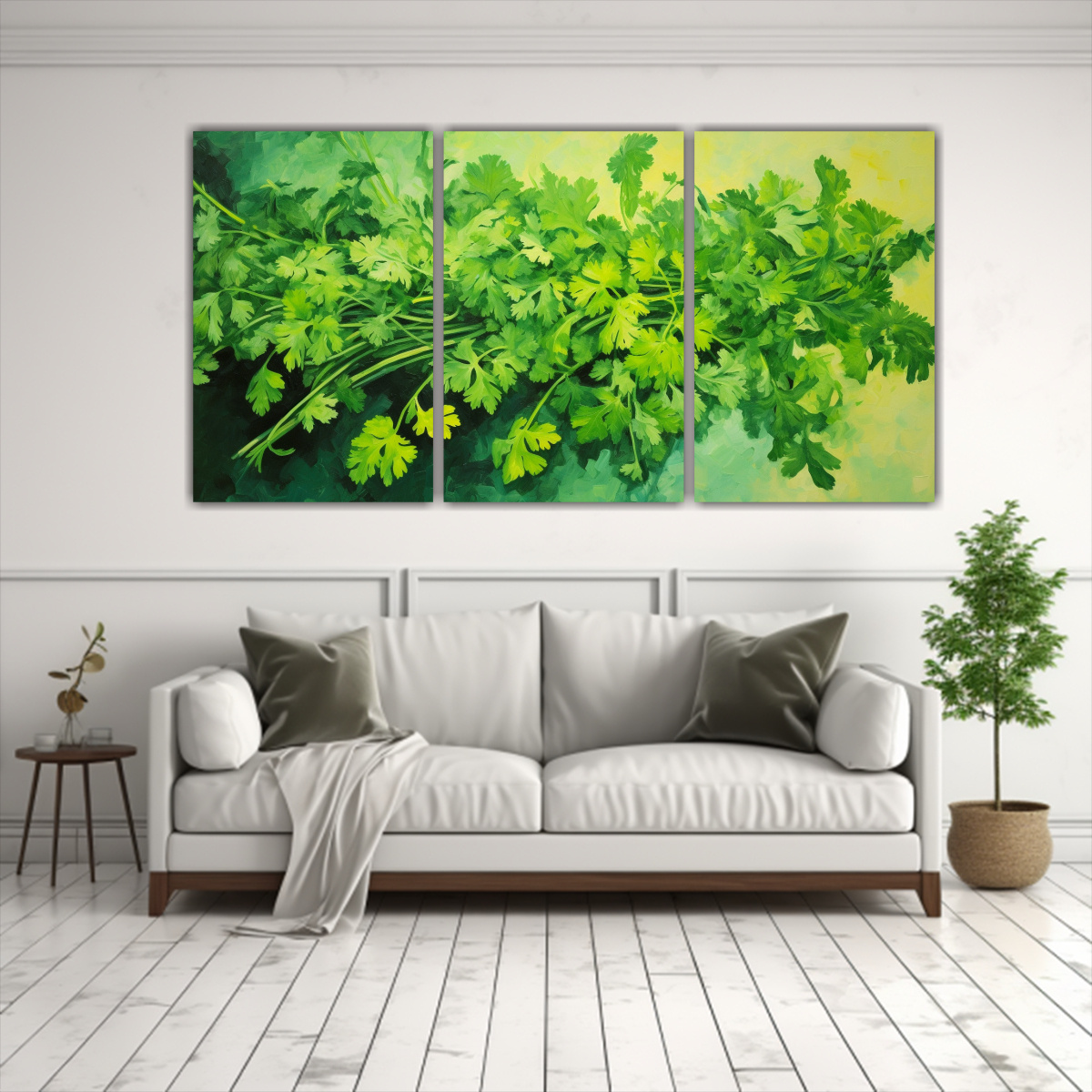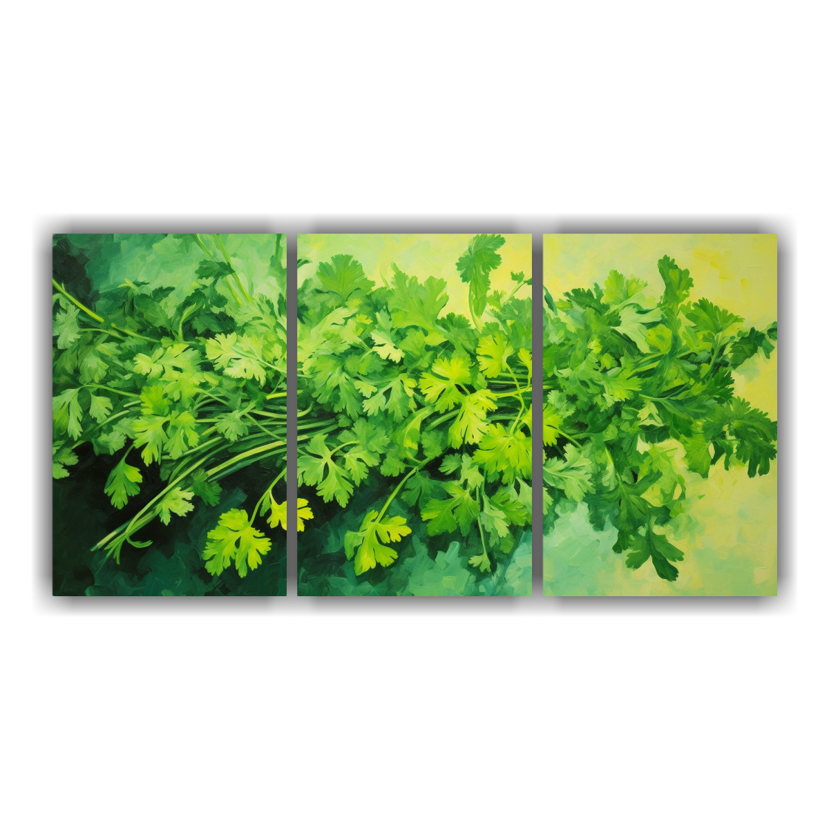 Tríptico Lienzo Imagen Color Hierbas Cilantro Abstracto Detalle Alto