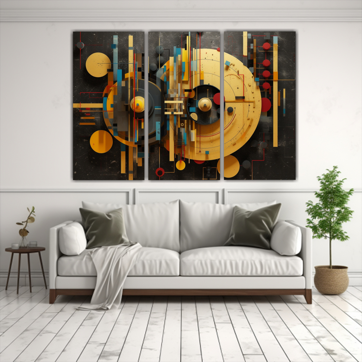 Este tríptico es ideal para decorar salas de estar o dormitorios, creando un ambiente moderno y sofisticado Colócalo sobre un sofá o cabecera de cama para darle un toque de color y estilo psicodélico a tu espacio ¡Combinará perfectamente con muebles en tonos neutros y minimalistas!