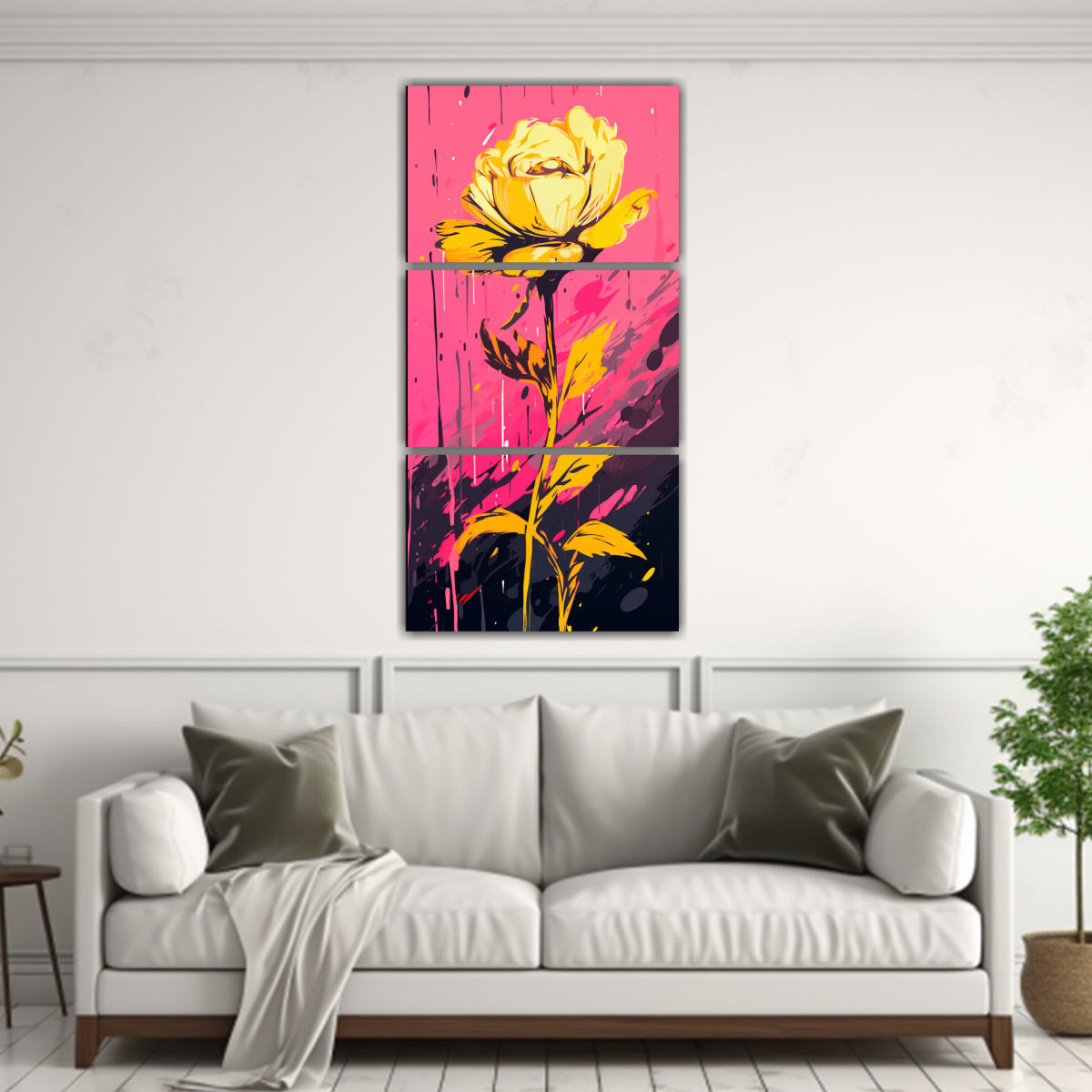 Este Tríptico Líneas Finas Amarillo y Rosa se vería perfecto en un salón moderno o una oficina creativa Combínalo con muebles en tonos neutros para resaltar su estilo neo-noir y darle un toque de elegancia a tu espacio