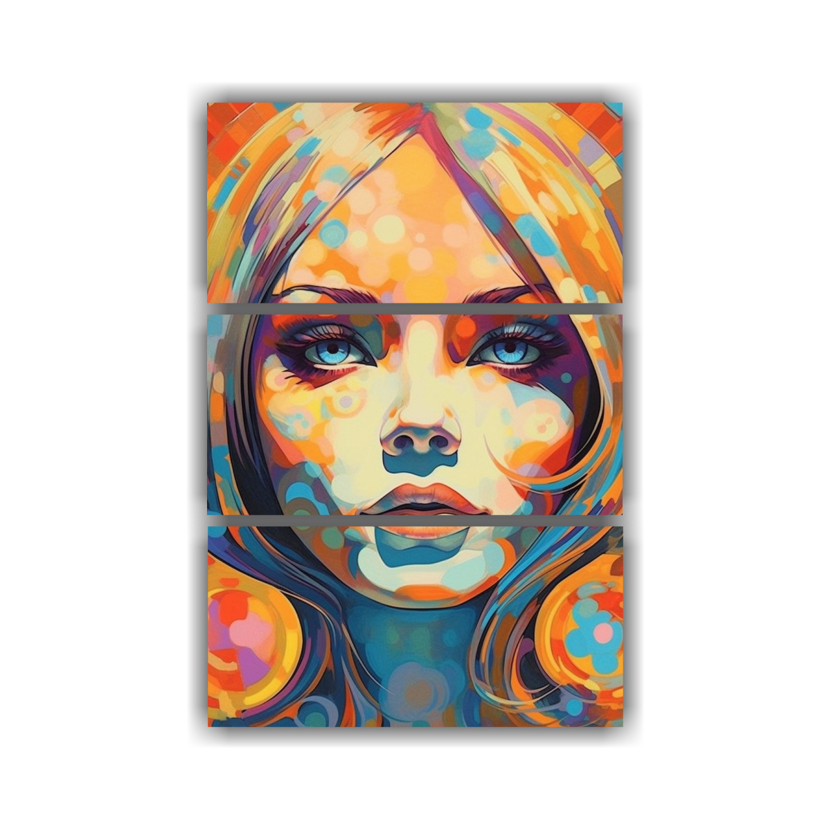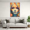 Tríptico Llamativo Retrato Femenino Retro Futurista Pinturas Decorativas