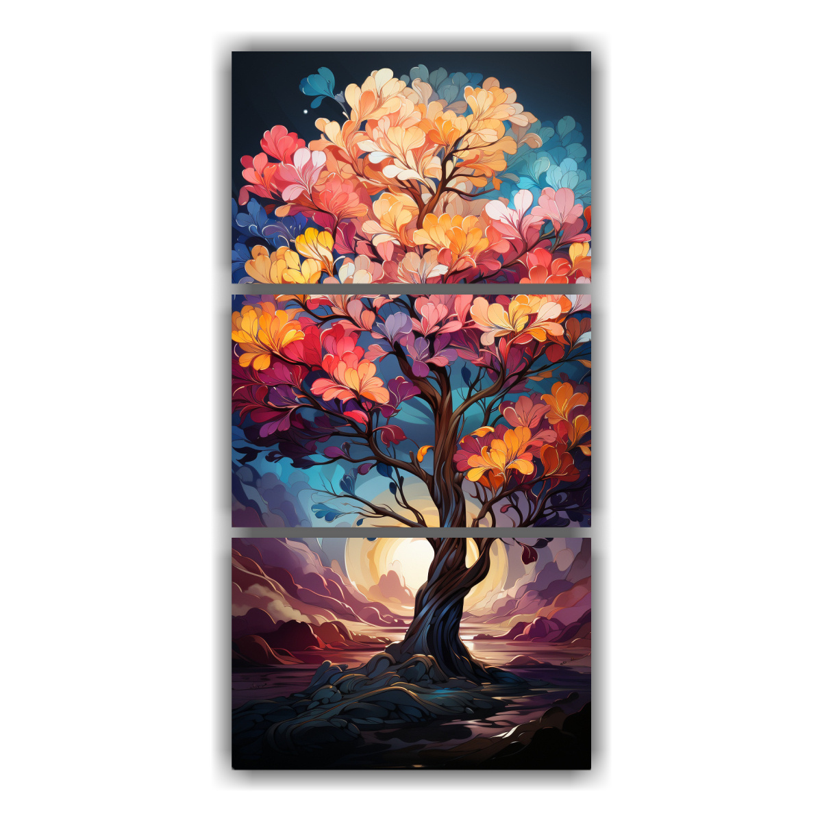 Tríptico Minimalista árbol Mango Arcoíris Atmósfera Neonoir Neopo