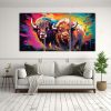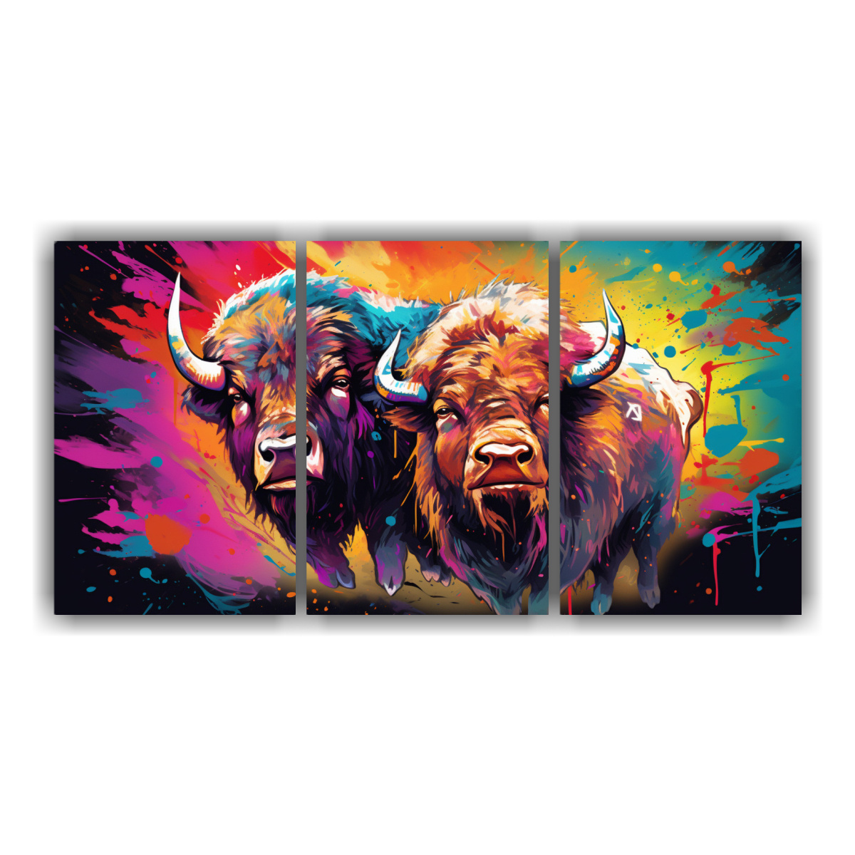 Tríptico Minimalista Bison Y Búfalo En Colores Vívidos Y Pastel