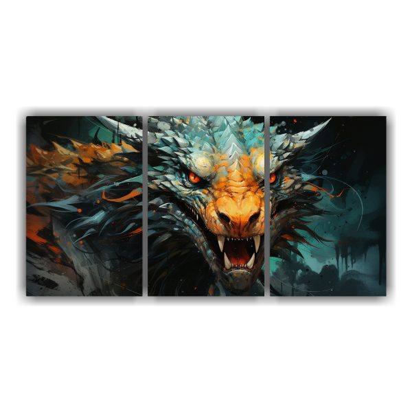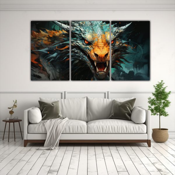Transforma tu espacio con este impactante tríptico de dragón en tonos verde y naranja Ideal para añadir un toque de misterio y estilo neo-noir a tu ambiente Envíos rápidos y gratuitos en Santiago, ¡no te lo pierdas!