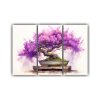 Tríptico Moderno Bougainvillea Y Bonsái En Turquesa Neonoir