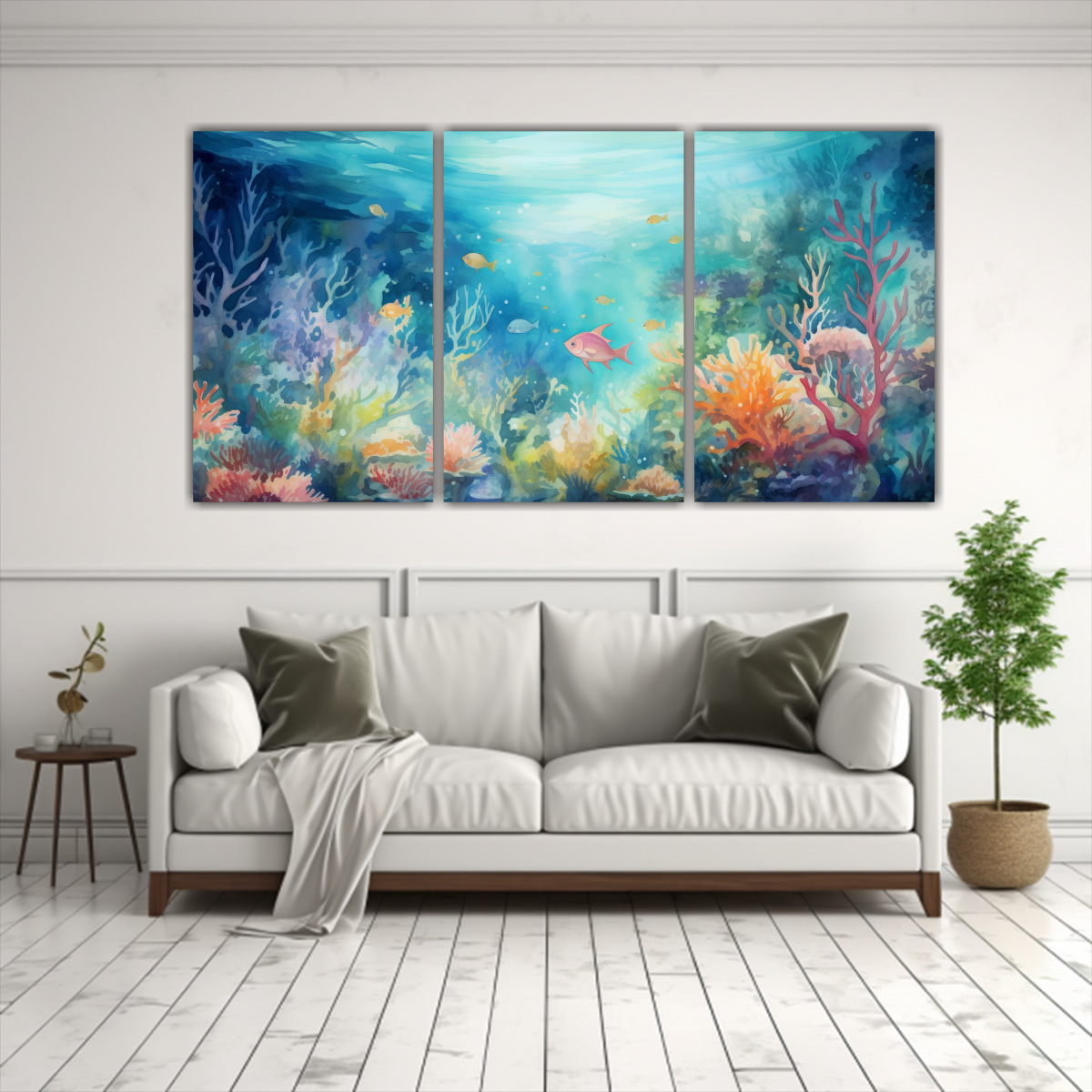 Tríptico Moderno Obra Maestra Escena Submarina Abstracta En Tonos Suaves