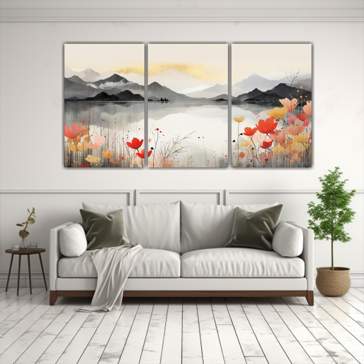 Tríptico Montañas Reflejadas En Decoración De Habitación
