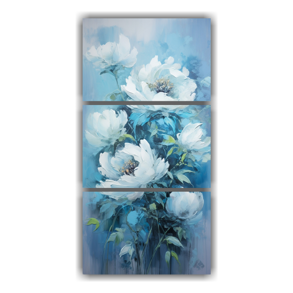 Tríptico Movimiento Interiores En Lienzo Con Pintura PEONÍAS Turquesa En Estilo Decorativo