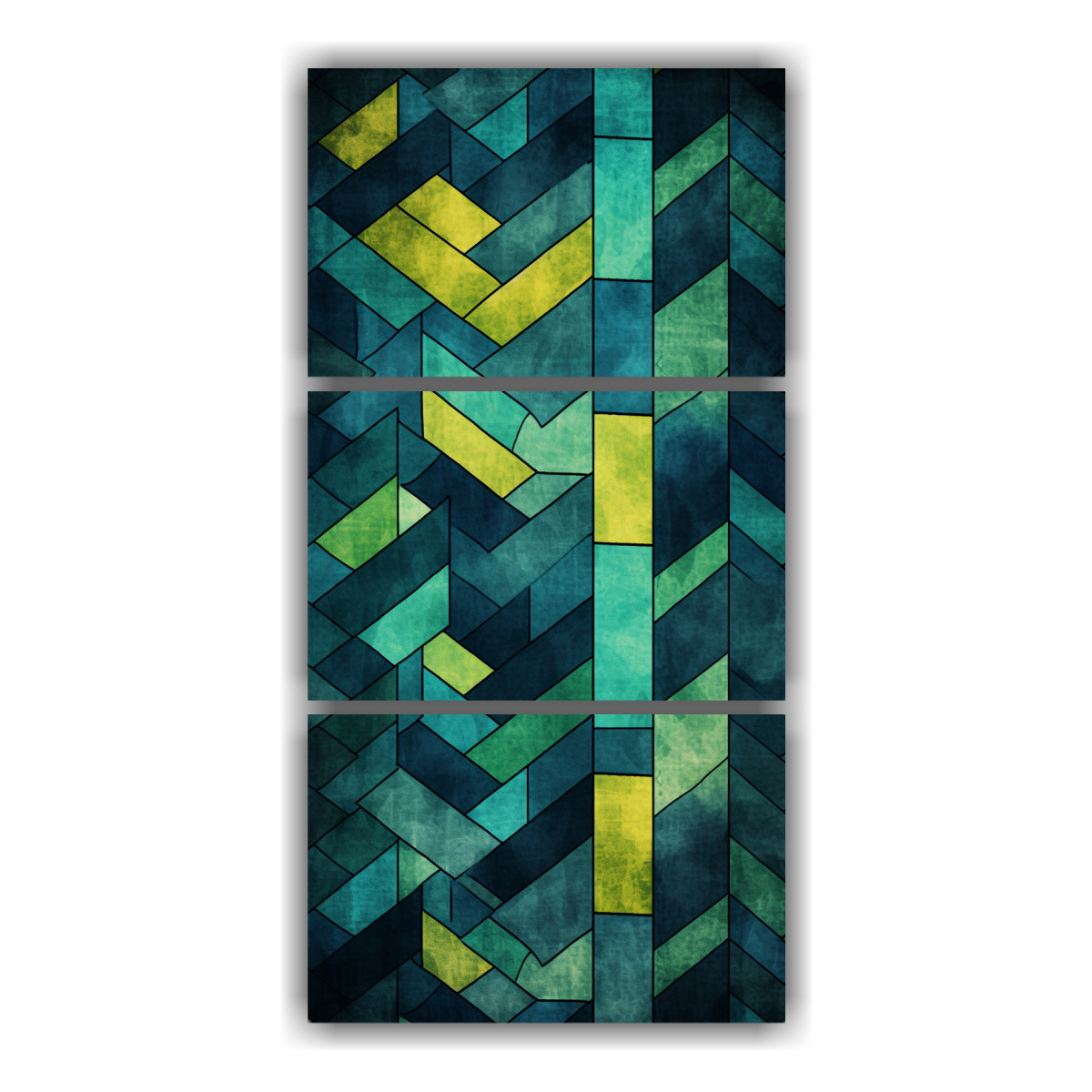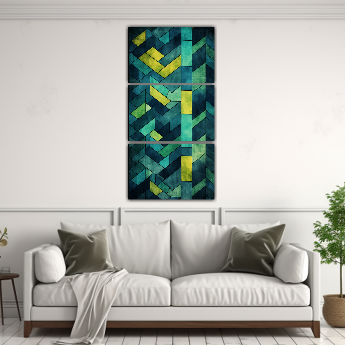 Este tríptico se vería espectacular en tu sala de estar, colócalo sobre el sofá principal para darle un toque moderno y sofisticado a tu espacio También puedes ubicarlo en un pasillo largo para crear un efecto visual impactante ¡Atrévete a experimentar con la simetría y los colores vibrantes de este cuadro!
