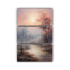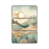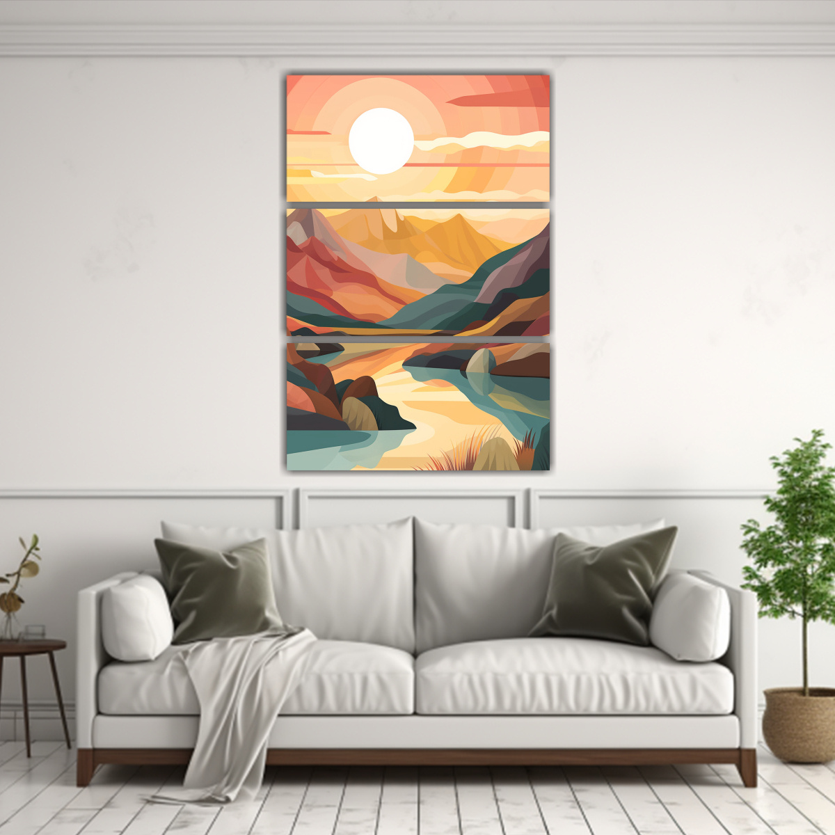 Tríptico Paisaje Abstracto Poder T Con Montañas Y Río En Estilo Temático
