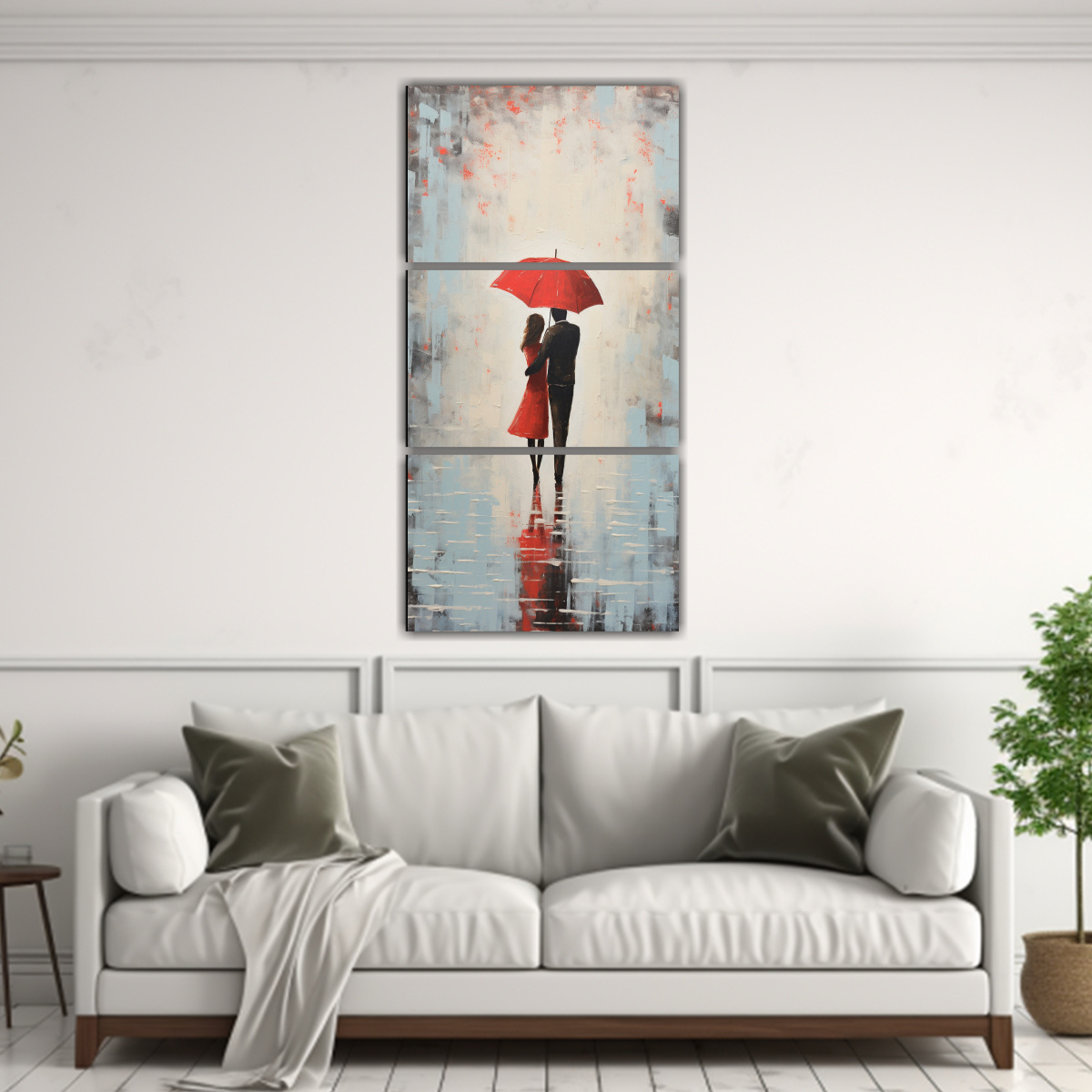 Tríptico Parejas Bajo Paraguas Rojo Lienzo Decorativo Estilo Galería