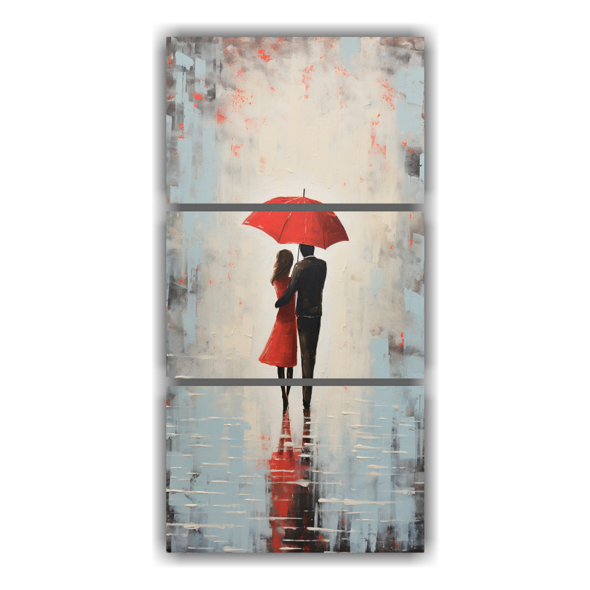 Decora tu hogar con el tríptico de parejas bajo paraguas rojo, ideal para dar un toque de romanticismo a tu espacio Con entrega rápida y gratis en Santiago, ¡no te lo pierdas!