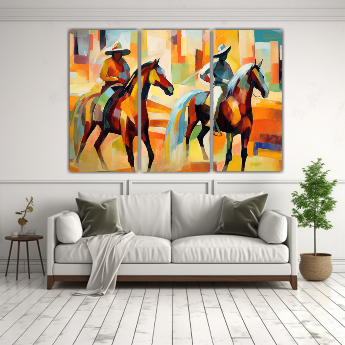 Este tríptico es ideal para colocar en el salón, sobre un mueble auxiliar o en una pared destacada Combina perfectamente con muebles de estilo moderno o minimalista, aportando sofisticación y color a tu espacio