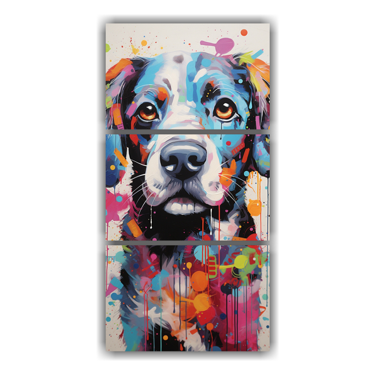 Decora tu hogar con el tríptico de perros abstractos en armonía de colores Impresos en tela de alta calidad con bastidores de madera, nuestros cuadros son la mejor opción para dar vida a tus espacios ¡Compra ahora!