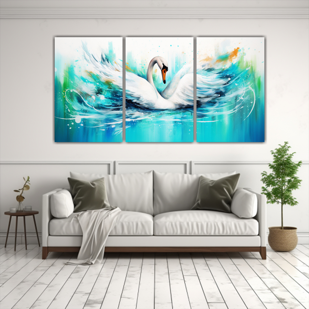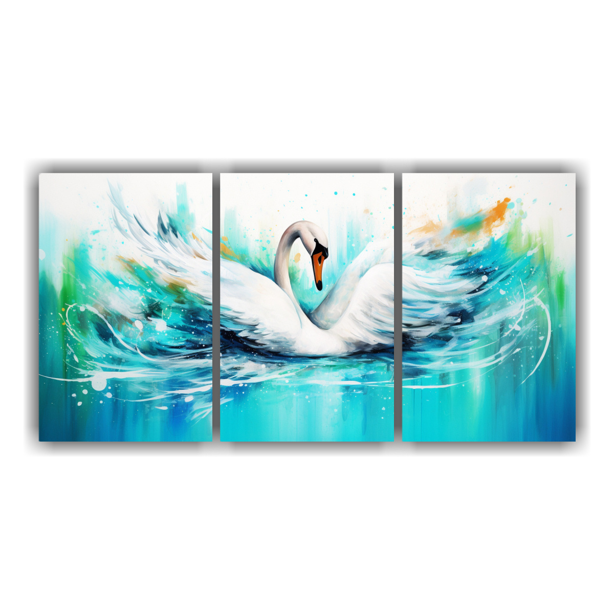 Tríptico Swan Blanco Turquesa Temática Neo Pop Art Decoración Pinturas