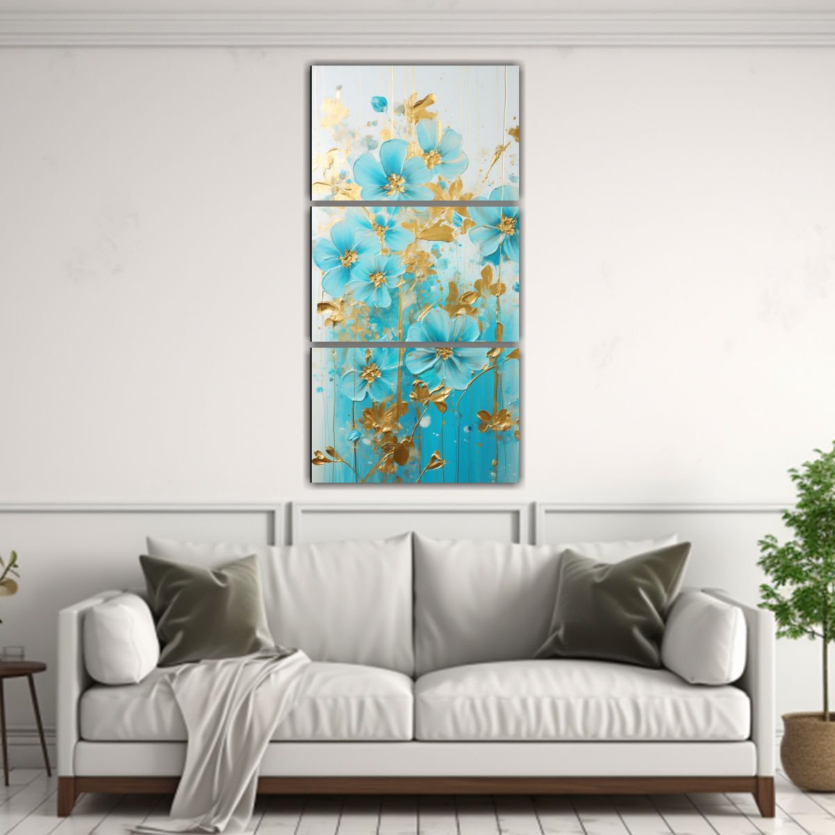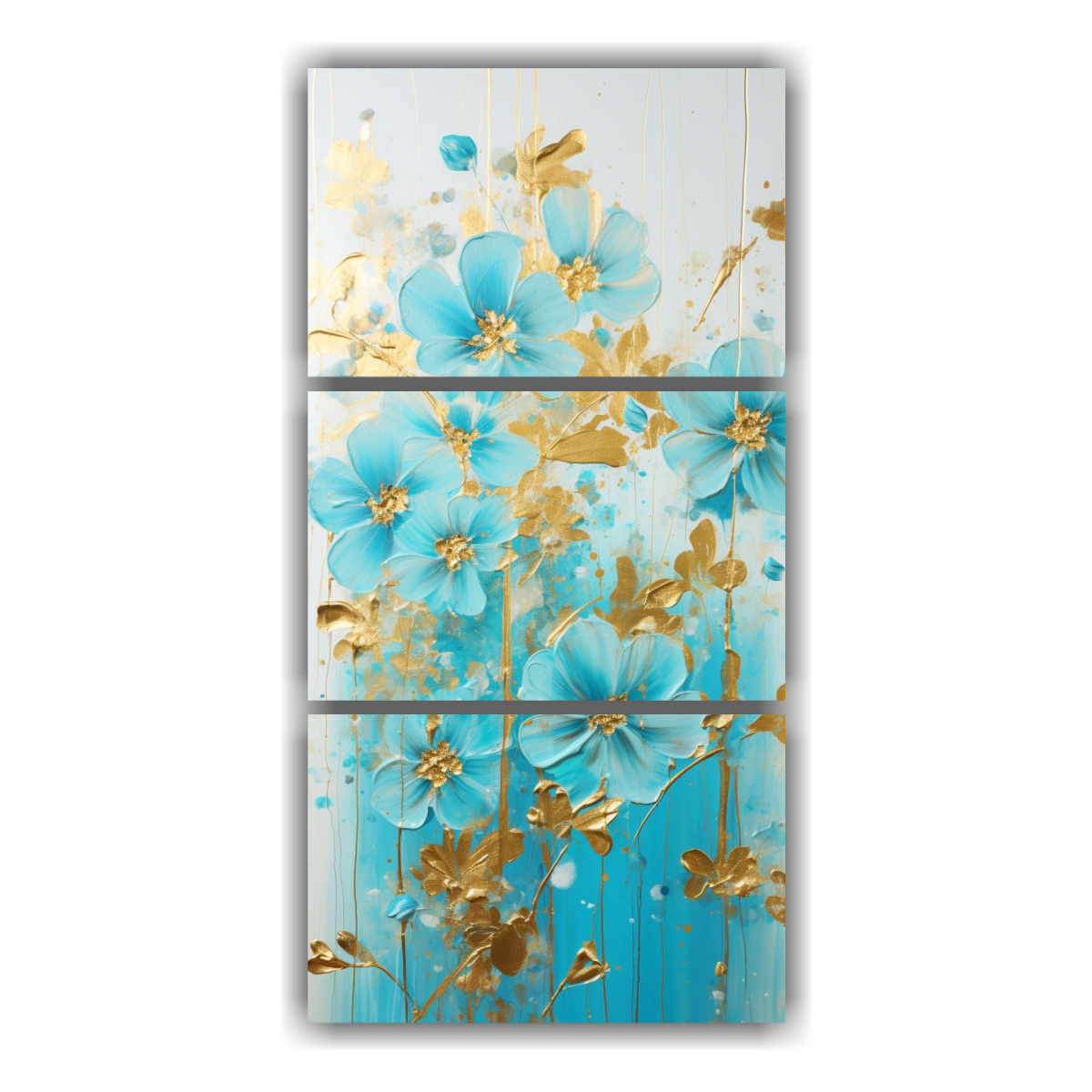 Este Tríptico Tela Sublimada Bastidor de Madera con una pintura acrílica sin costuras en blanco se verá espectacular en el salón de tu casa Colócalo en la pared principal sobre el sofá para crear un punto focal elegante y sofisticado Su diseño exclusivo y los colores Menta, Dorado, Beige, Turquesa, Plateado, Azul Marino grisáceo y Gris le darán un toque de estilo a tu espacio