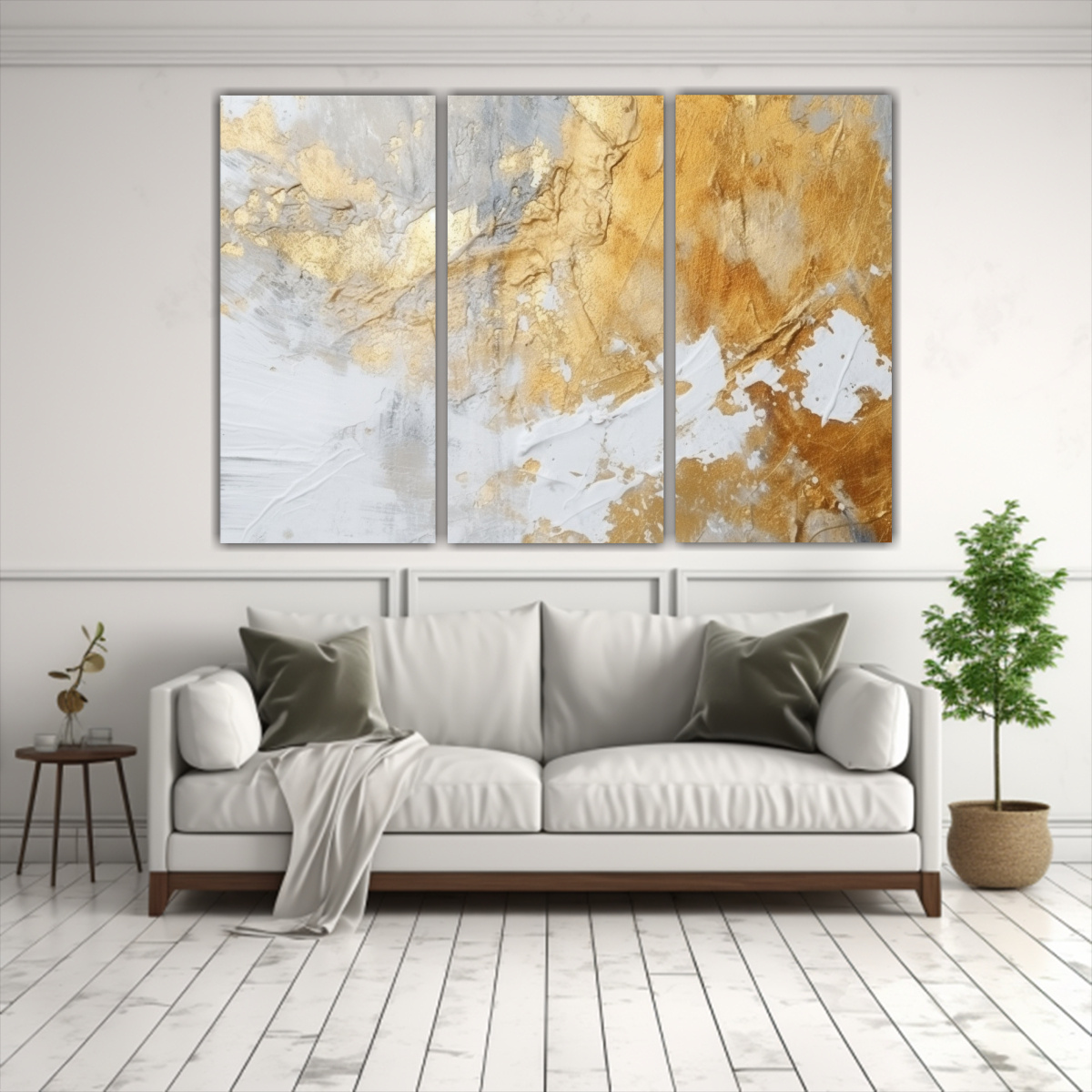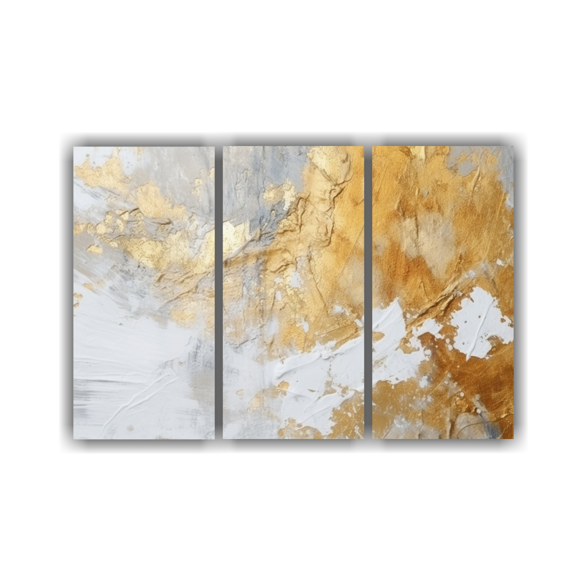 Tríptico Telas Bastidor Alta Calidad Profundidad Fondo Dorado Y Blanco, Estilo Decorativo