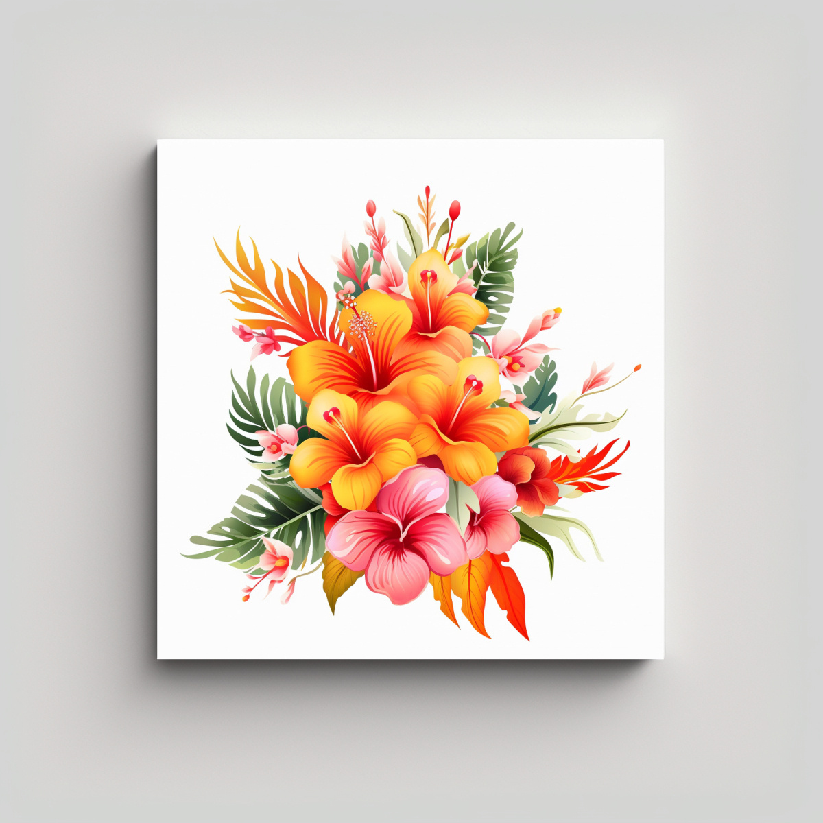Tropical Exótico Tela En Bastidor Composición Vibrante Rosa Naranja Amarillo Rojo