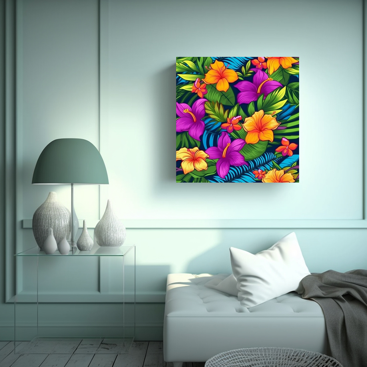 Las flores brillantes en tonos tropicales son una excelente opción para añadir vida y calidez a tus espacios Coloca este cuadro en tu sala de estar, comedor o incluso en tu dormitorio para crear un ambiente vibrante y acogedor No esperes más, aprovecha nuestros precios más bajos del mercado y adquiere tu pintura exclusiva de flores brillantes para darle un toque de magia tropical a tu hogar