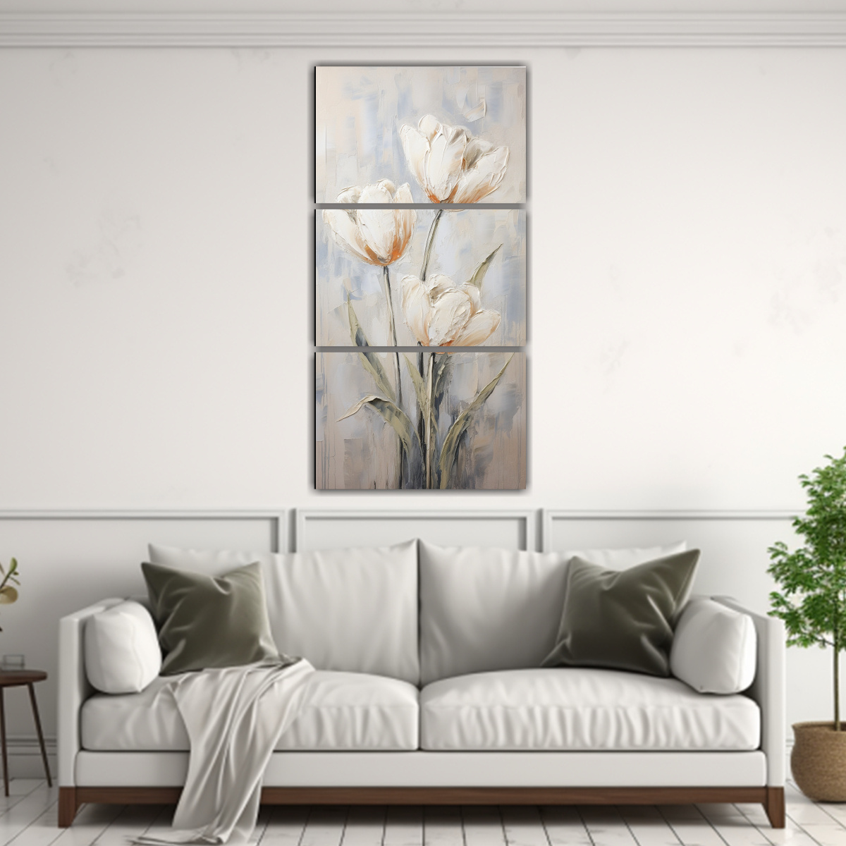 Tulipanes Blancos En Lienzo Estilo Tres Artes