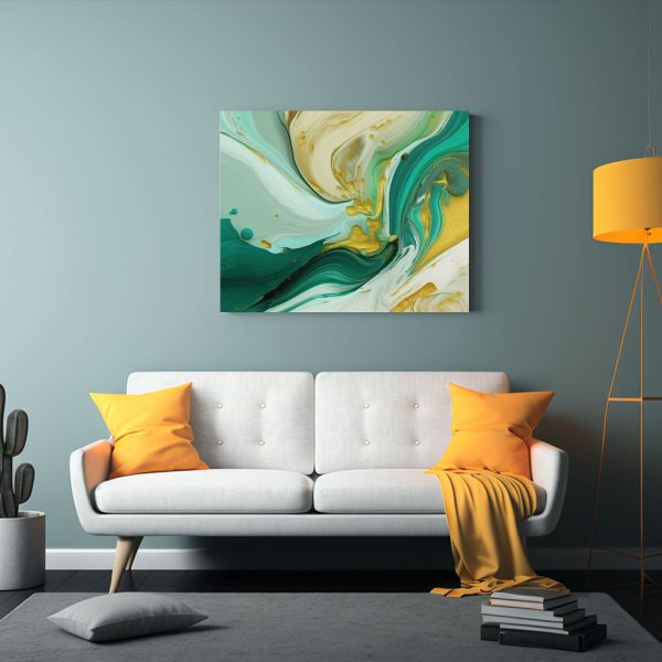 Venta Cuadro Abstracto Textura Océano Verde Claro Con Ondas Fluidas