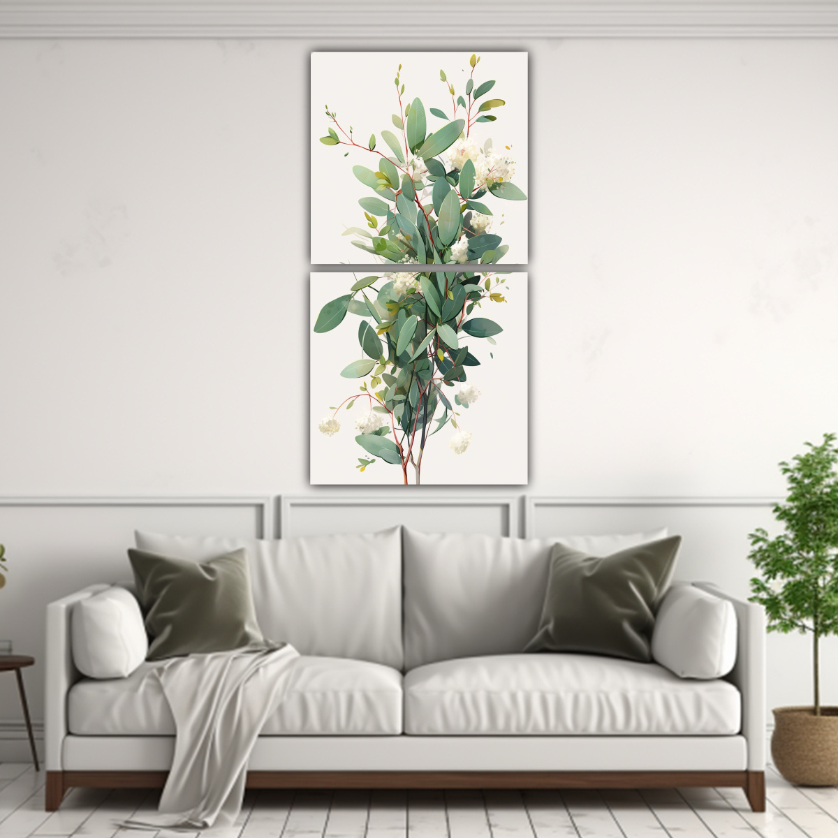 Este cuadro de un árbol de eucalipto en colores verdes se verá espectacular en tu sala de estar Colócalo sobre un sofá beige para crear una atmósfera relajante y elegante Completa la decoración con cojines en tonos grisaceos y plateados para lograr un efecto armonioso