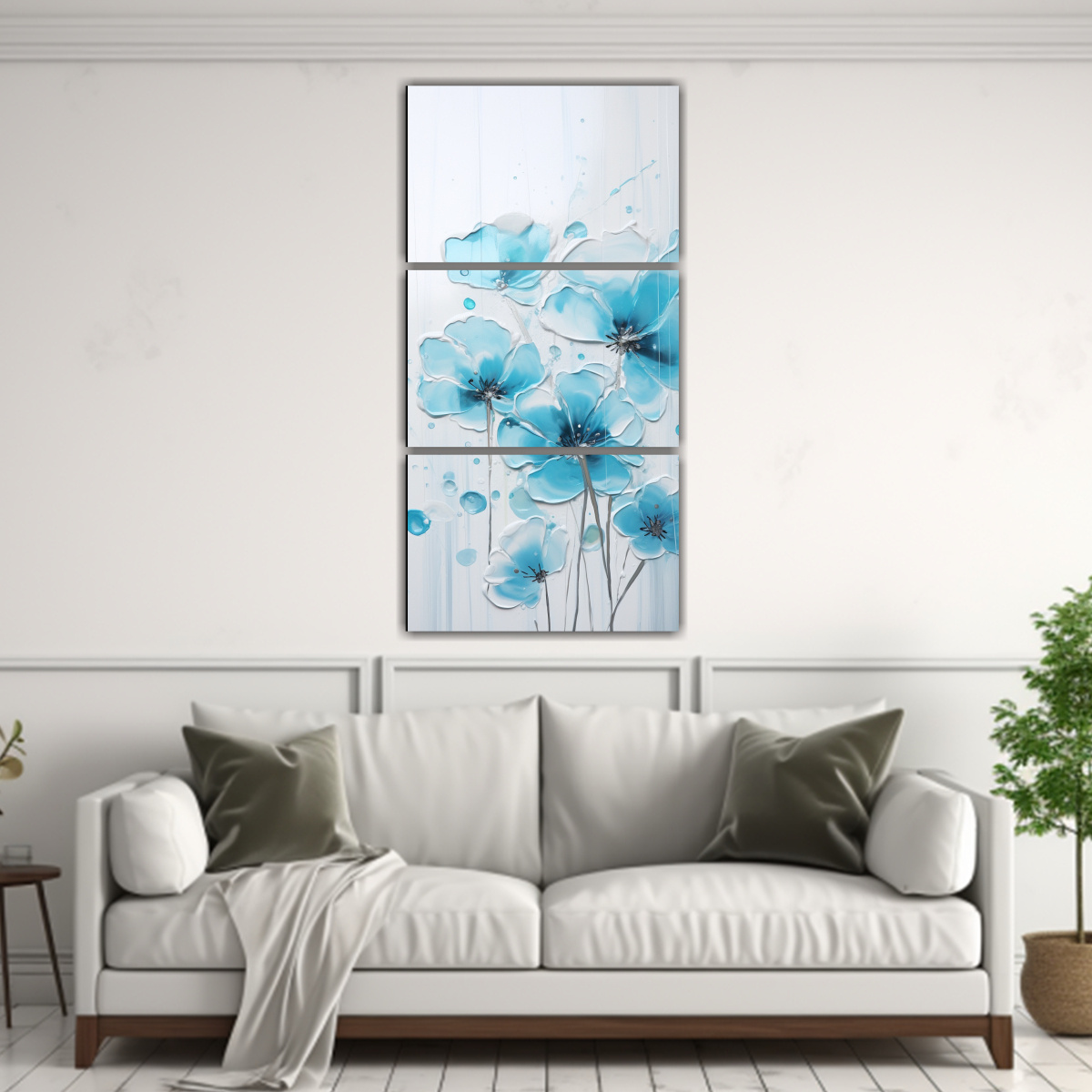 Coloca este conjunto de cuadros en la sala de estar sobre un sofá gris claro para crear un ambiente moderno y armonioso Combina con cojines en tonos azules y plateados para resaltar la belleza de las pinturas