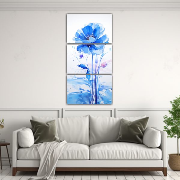 Este cuadro en tonos azules y lila sería perfecto para colocar sobre la cabecera de la cama, creando un punto focal elegante y moderno en tu dormitorio Combínalo con cojines y accesorios en tonos neutros para resaltar su estilo neo-noir