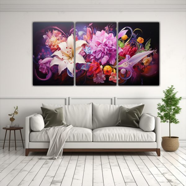 Coloca este cuadro de flores abstractas en tu sala de estar para darle un toque moderno y elegante Combina con muebles en tonos neutros para resaltar su belleza y crear un ambiente acogedor