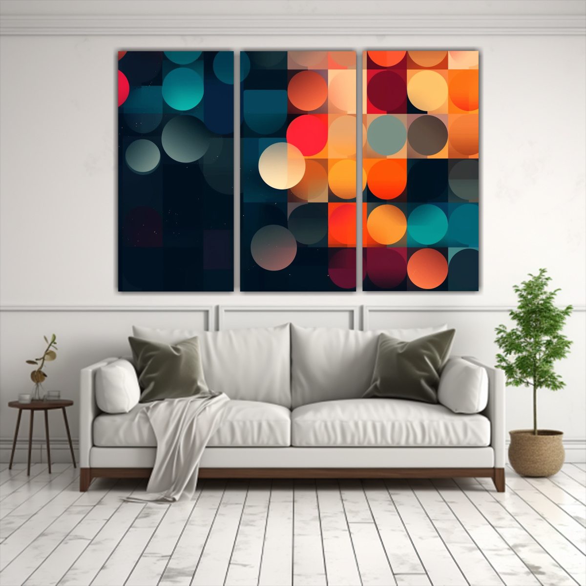 Para realzar la decoración de tu sala de estar, te recomendamos colocar este cuadro obra maestra en la pared central sobre un sofá de color beige La combinación de colores vivos como el Coral, Menta y Amarillo Claro añadirá un toque moderno y elegante a tu espacio