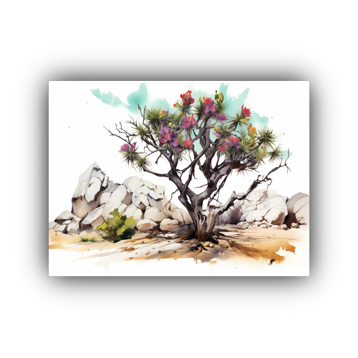 Venta De Lienzo Visual: Árbol De Josué En Acuarelas Colores Neonoir