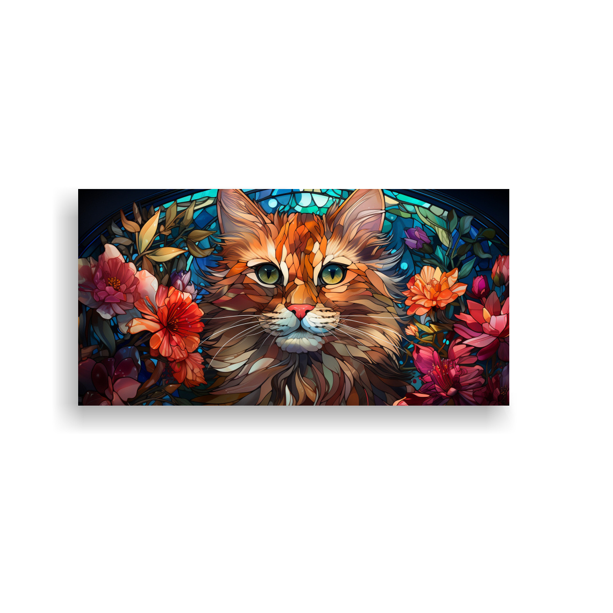 Ventana De Cristal Manchado Digital Con Gato Adorable En Alta Calidad.