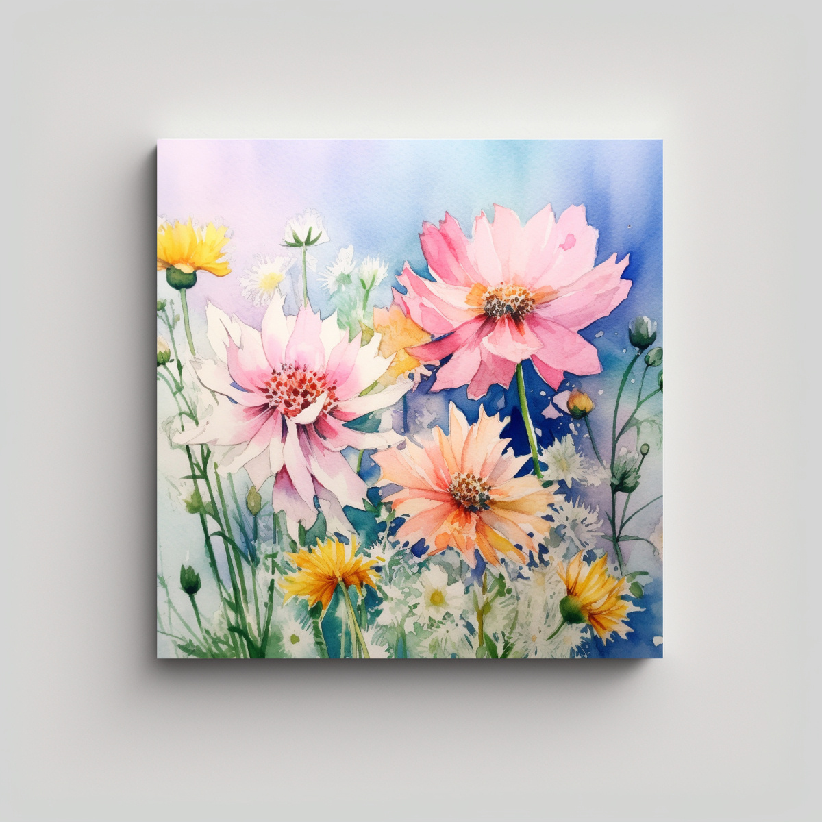 Verano Acuarela Flores Arte Decorativo Temático Inspirador