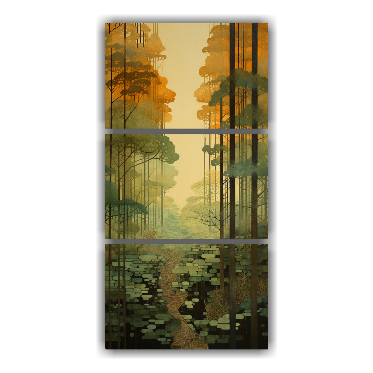 Viaje Abstracto Por Capas Del Bosque En Pinturas En Bastidor.